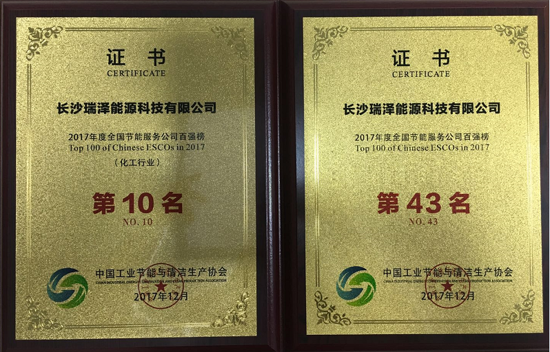 近日,“2017年度全國節能服務公司百強榜”名單出爐,瑞澤能源再次入選,并被評入選“全國節能服務公司化工行業前10名”。